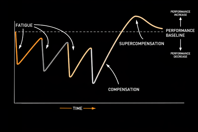 The key to successful training is all about taking advantage of these heightened levels of fitness and then generating a new fatigue stimulus, as demonstrated in the diagram below.