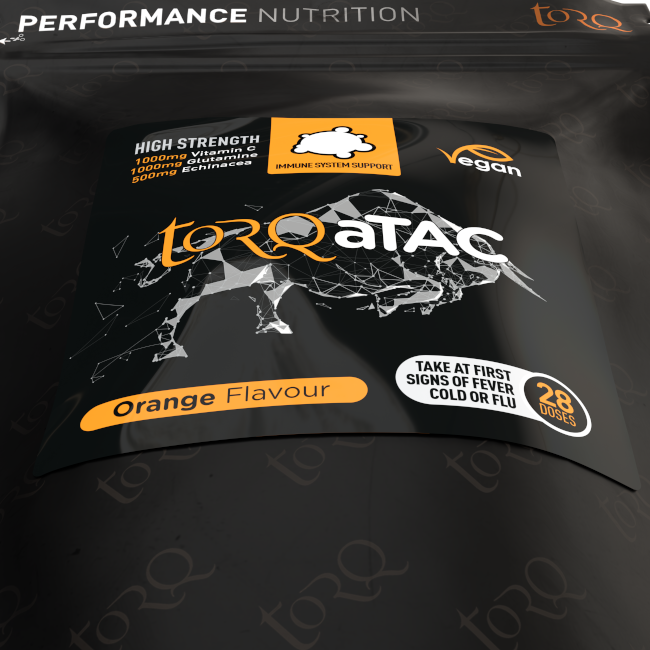 We recommend that you routinely take onboard 1000 IU of vitamin D daily all year round along with 15mg zinc. Alongside a healthy balanced diet, these will go a long way towards supporting your overall immune system. A moderate daily dose of our TORQ aTAC product can be taken in the short term if you feel particularly vulnerable to infection – for instance if you’re travelling or attending a social function. Follow the mega-dosing protocol outlined on the TORQ aTAC pack if you are struck down by illness and stop training immediately.