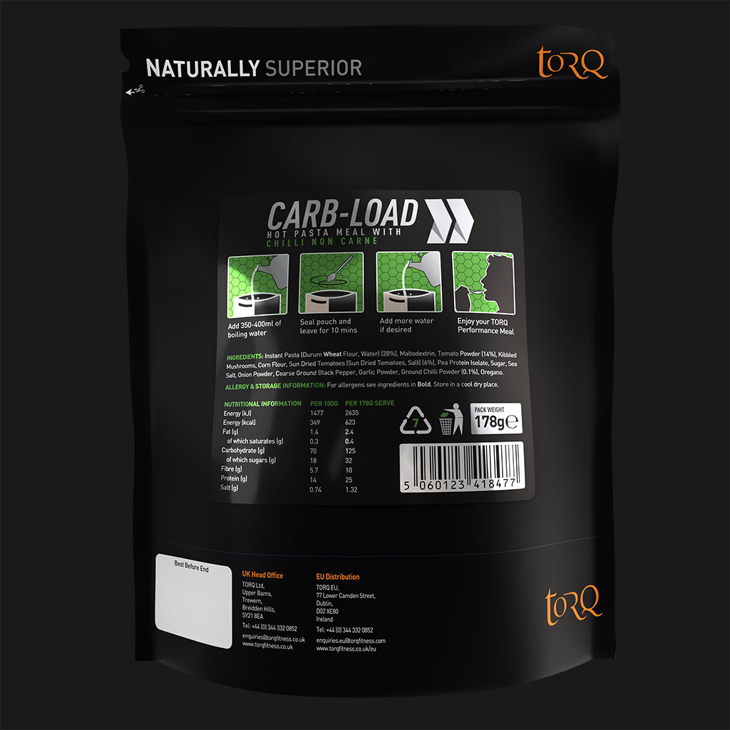 TORQ CARB-LOAD is formulated to a precise 5:1 Carbohydrate to Protein ratio and is designed to be consumed the day prior to your big endurance event or challenge. Research has demonstrated that loading your muscles and liver with carbohydrate (glycogen) prior to a big endurance performance extends time to exhaustion and affords you a higher pace.